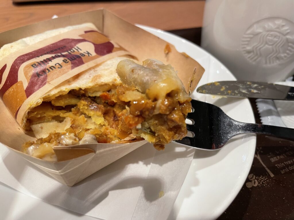 以前販売されていた「きのこのキーマカレー ホットトルティーヤ」に似ていますが、今回はきのこの代わりにポテト入り。チーズとひき肉も植物性からできており、まるで本物のようなひき肉の食感と濃厚なチーズが美味しかったです。